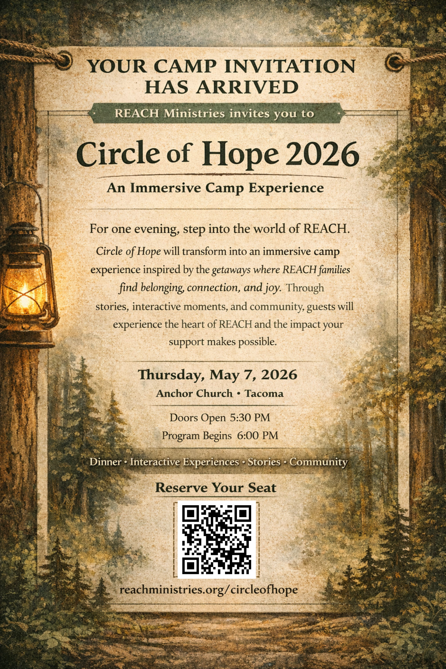 On May 7th, we’re transforming the evening into something new—an immersive, camp-inspired experience we’re calling “Camp REACH.” From the moment you walk in, you’ll step into the heart of what makes REACH so meaningful.